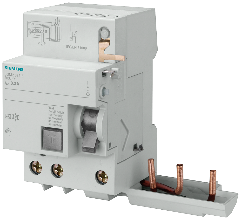 Bloque diferencial p/automáticos 5SY de 70mm, tipo AC (alterna), 400V AC, 0,3…63A, 3 polos, 30mA