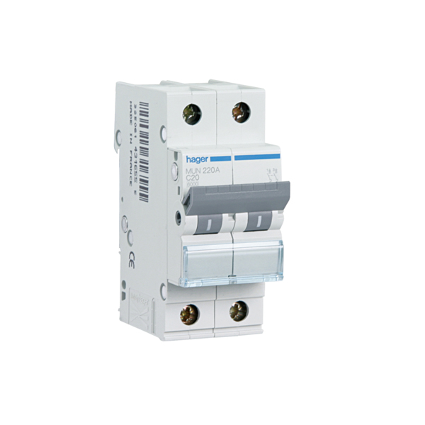 Interruptor automático magnetotérmico hager serie MU, 1P+N, 10A, curva C, poder de corte 6000A según UNE EN 60898-1. Certificado AENOR.