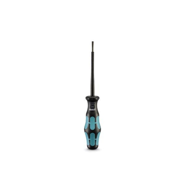 Destornillador para tornillos de cabeza ranurada, adecuado para todos los bornes de tornillo hasta una sección de conexión de 1,5 mm², hoja: 0,4 x 2,5 mm.