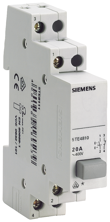 Pulsador 70mm, botón gris, 230V, 1 mód., cont mant, 1NA+1NC, 20A